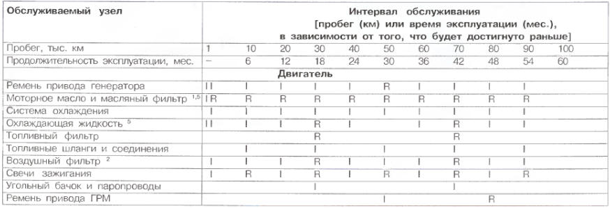 1 - При эксплуатации автомобиля в тяжелых условиях (езда на короткие расстояния, длительная работа двигателя на холостом ходу, запыленность воздуха) - меняйте моторное масло каждые 5 тыс. км или каждые 3 мес. эксплуатации, в зависимости от того, что будет достигнуто раньше.