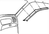 2. Снимите верхние обивки передних, средних и задних стоек.