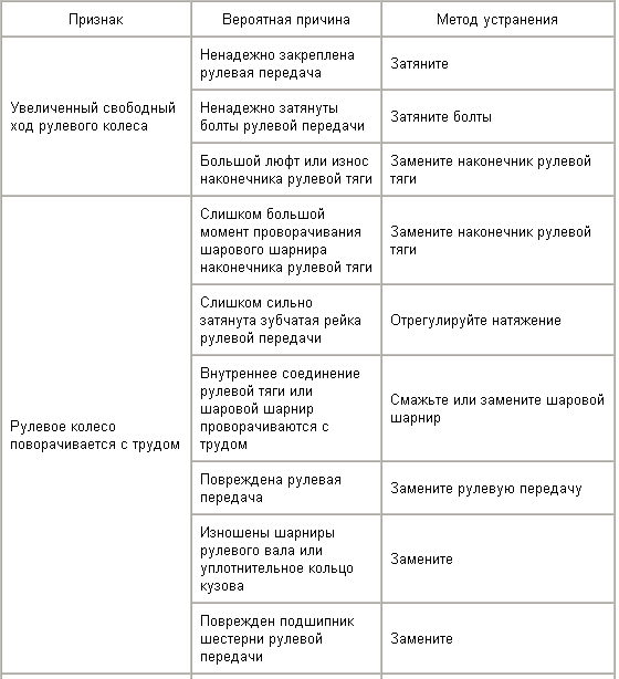 Поиск и устранение неисправностей (рулевое управление без усилителя)