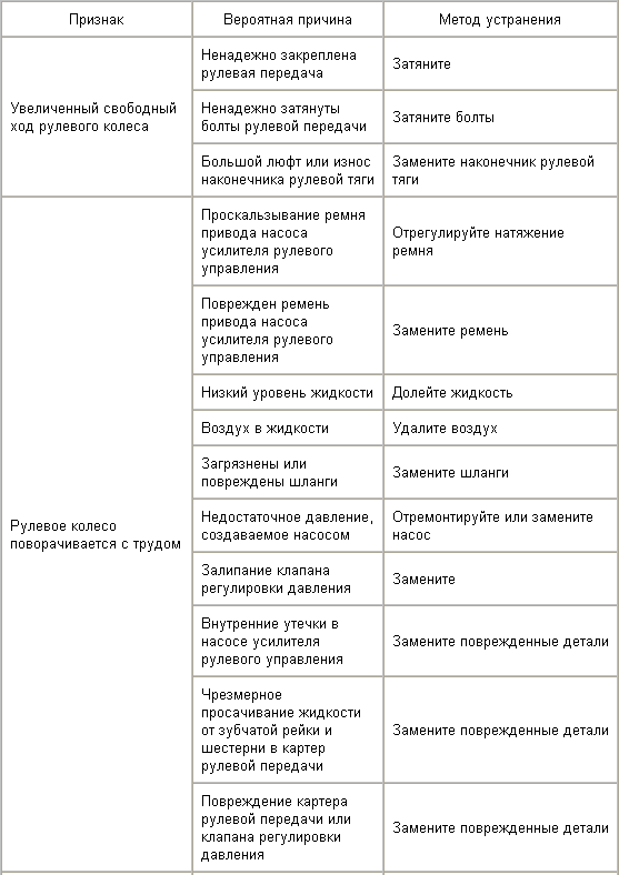Поиск и устранение неисправностей (рулевое управление без усилителя)