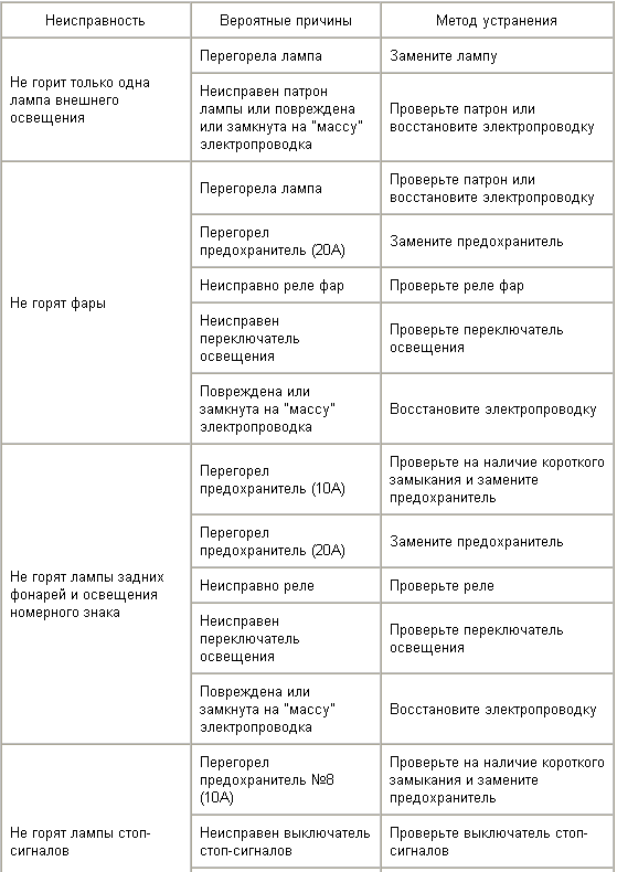 Hyundai Accent: Поиск и устранение неисправностей системы освещения